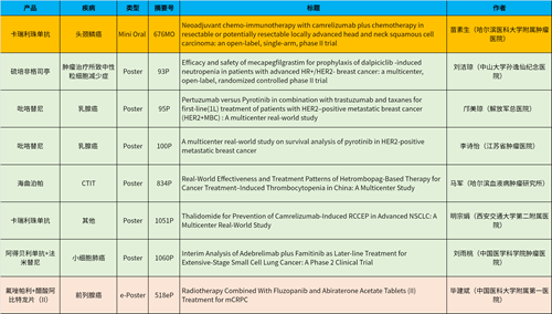 在头颈肿瘤、乳腺癌、肺癌、前列腺癌等多个疾病领域,卡瑞利珠单抗、阿得贝利单抗、吡咯替尼、氟唑帕利、法米替尼、醋酸阿比特龙片(II)等抗肿瘤新药相关研究一共入选了1项简短口头报告、4项壁报展示和1项电子壁报,彰显了金年会金字招牌诚信至上医药强劲的研发实力。